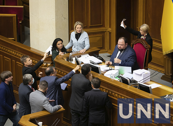 После блокирования трибуны в президиум поступило предложение об отстранении от председательства на заседании первого вице-спикера ВР Руслана Стефанчука (председательствует, пока спикер парламента Дмитрий Разумков находится на самоизоляции из-за коронавируса). Ему вменяют нарушение процедуры голосования — то есть, сокращение процедуры рассмотрения в зале и отказ от рассмотрения части поправок, поданных нардепами.